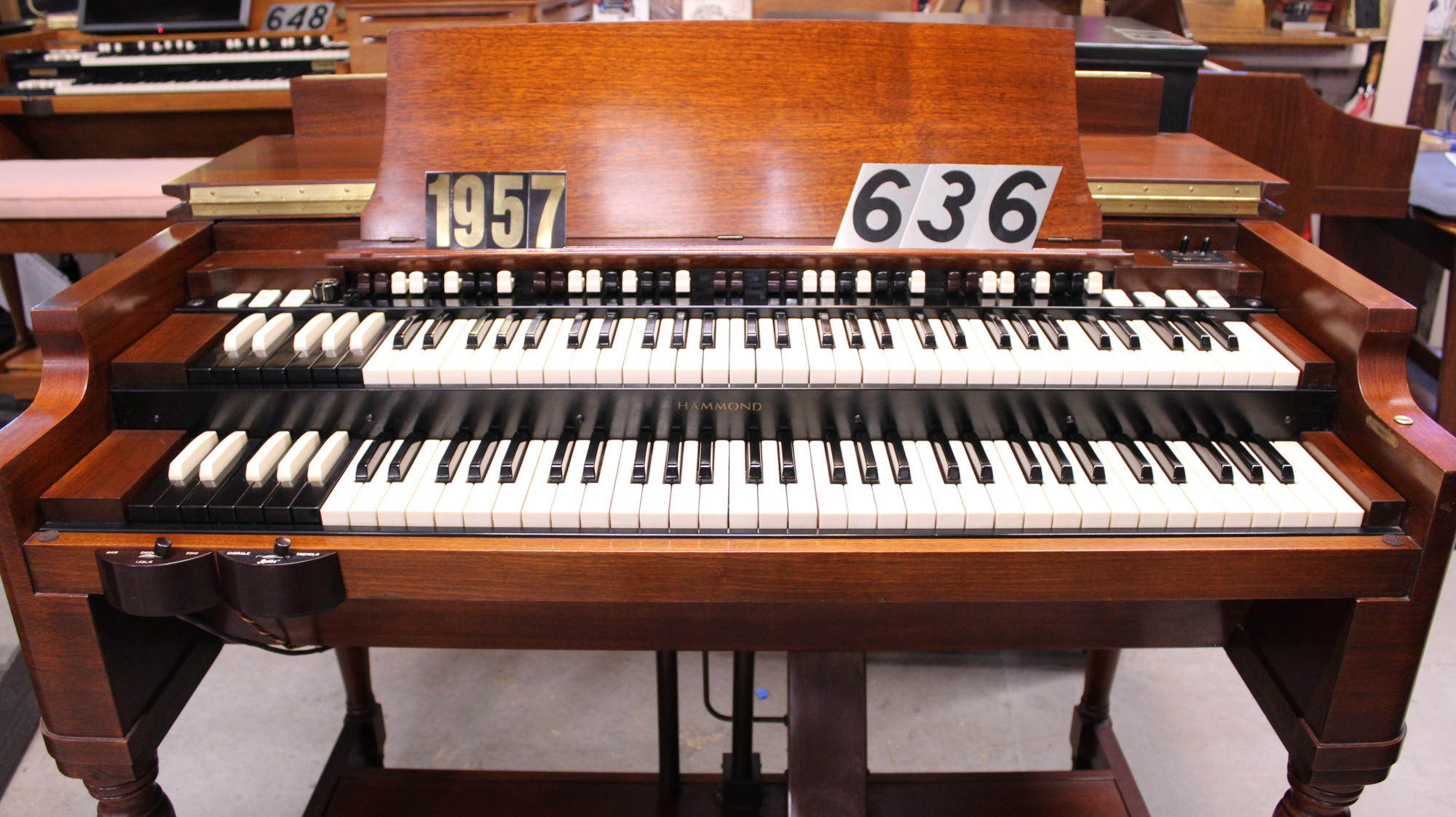 636 is a 1957 Hammond B-3 in a mahogany finish, for sale at Keyboard Exchange International. This golden-era B-3 offers that unmistakable Hammond experience—smooth waterfall keys, lively percussion, and a responsive touch that connects player to music like no other instrument can. Whether you're shaping lush gospel chords, gritty blues riffs, or soaring jazz lines, this organ has the character and voice to inspire. Backed by KEI's 55+ years of expertise, you'll have both a reliable instrument and a partner in your musical journey. Worldwide delivery and financing available.