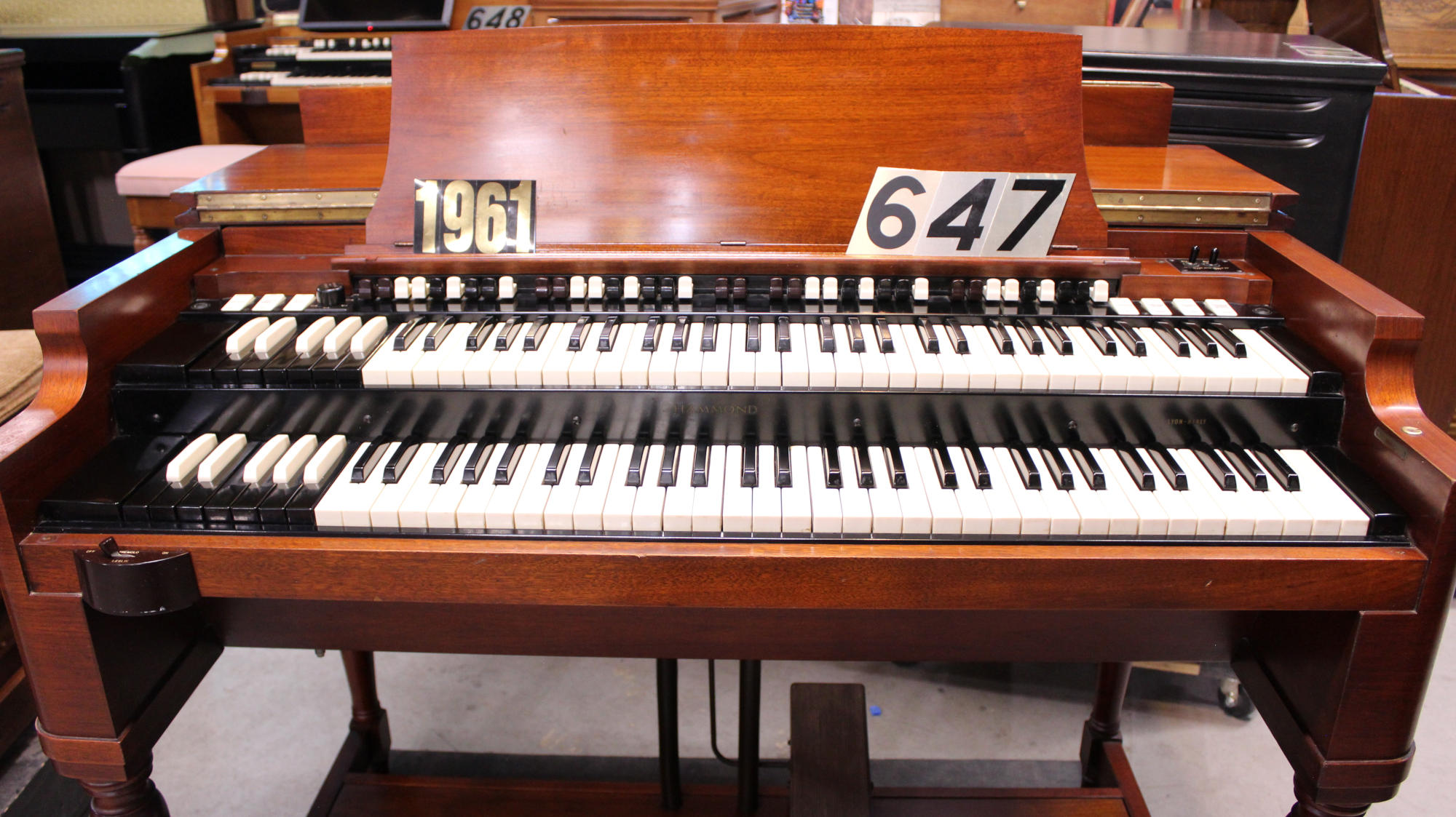 647 is a 1961 Hammond B-3 in mahogany, for sale here at Keyboard Exchange International. This organ has the classic tonewheel voice players love—smooth drawbars, expressive percussion, and a warm, full sound that fills a room with ease. Its rich mahogany cabinet adds timeless style to go along with the legendary Hammond tone. Backed by KEI’s 55+ years of experience, you can buy with confidence knowing this B-3 is ready for its next chapter. Worldwide shipping and financing are available to make the process simple.
