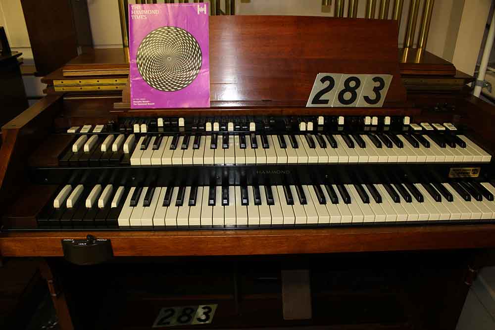 #283 is a 1957 brown walnut Hammond C-3 with Leslie to be selected. Serial #68084. (SOLD)