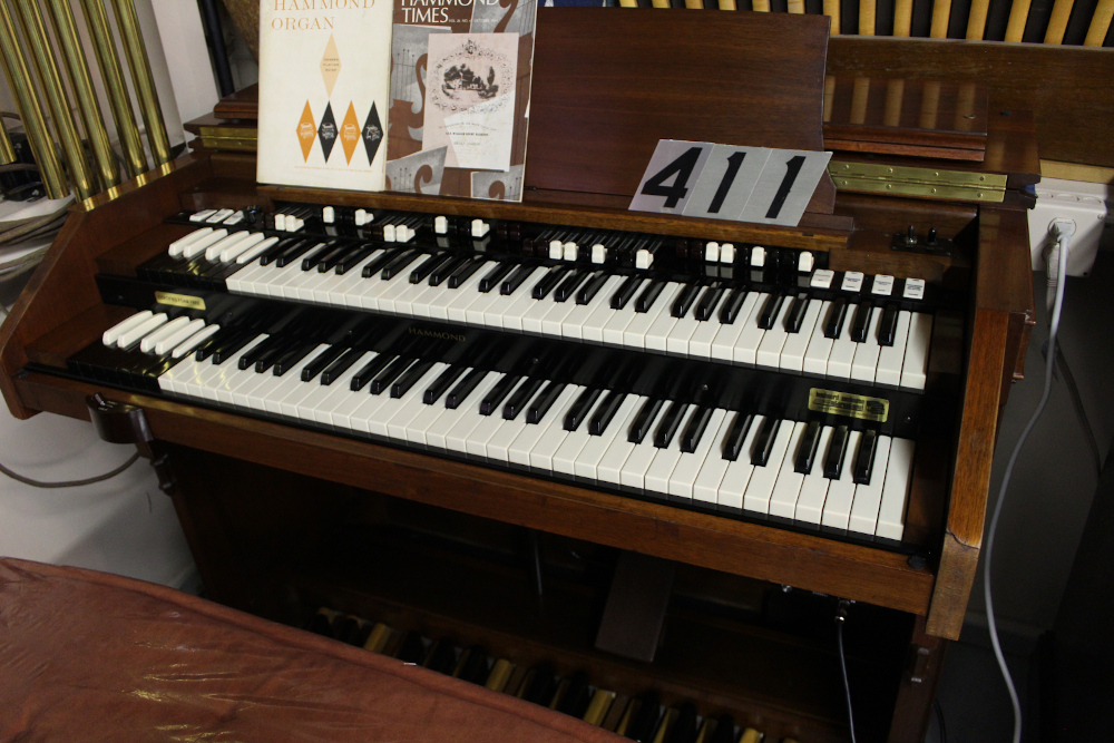 #411 is a 1956 Hammond C-3 that has a very rich and warm retro tone that stands out, feels great and is easy to play! Comes paired with a Leslie 122. Serial #62130