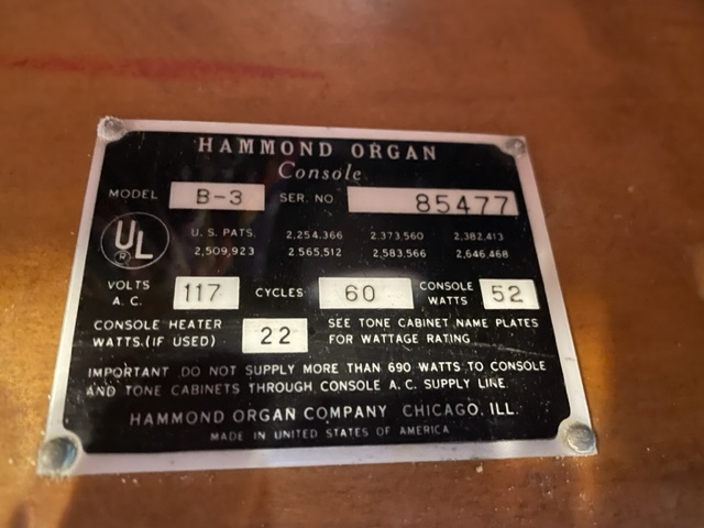 SOLD - 1961 Hammond B-3 (521)