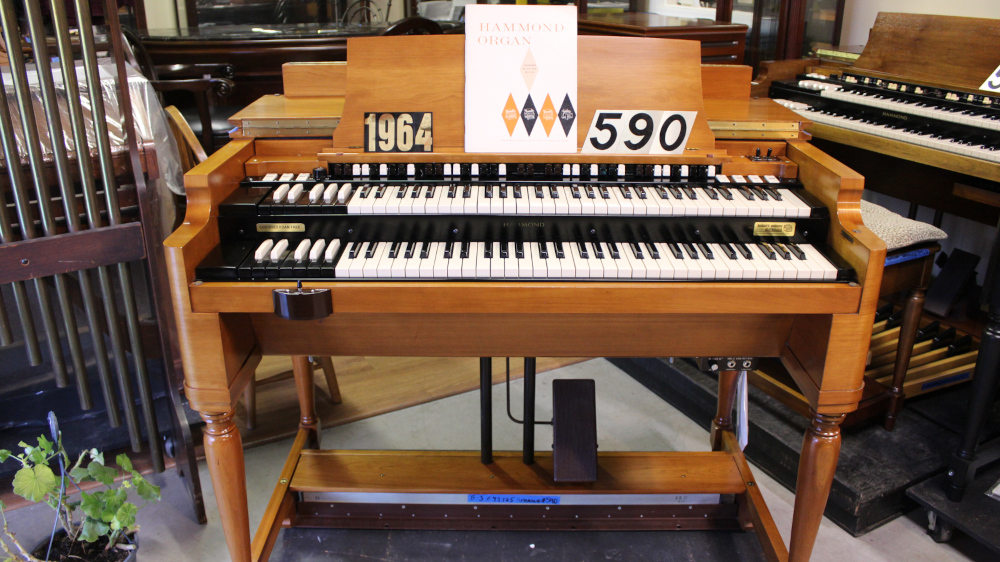 #590 is a 1964 Hammond B3 in a Fruitwood finish. Serial #93725 SOLD