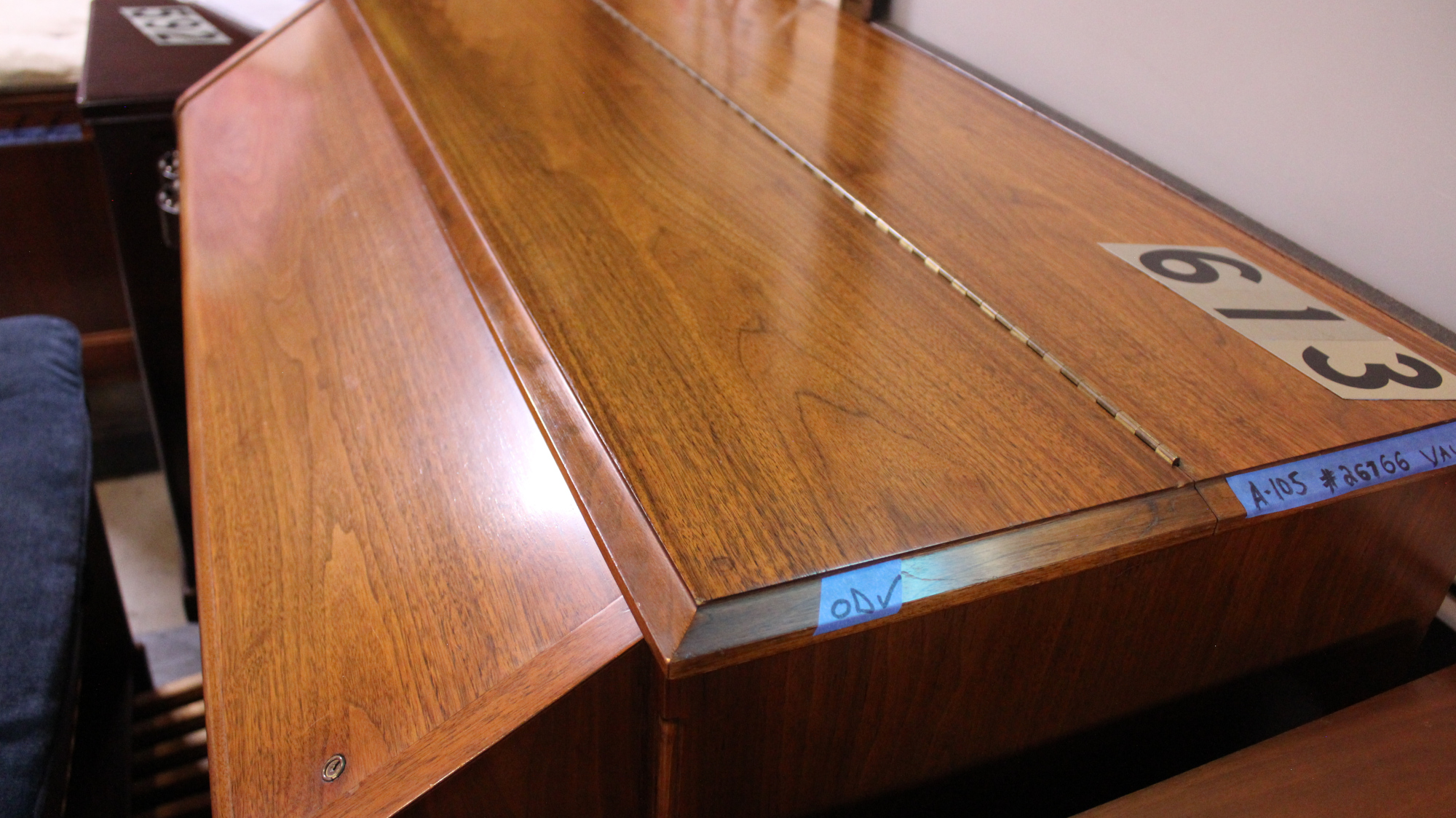 This 1965 Hammond A-105, serial #26766, features a stunning Walnut cabinet and a red-capped tone generator for that classic, full-bodied Hammond sound. Equipped with factory-installed reverb, this model delivers both warmth and versatility in tone—ideal for churches, studios, or home use.