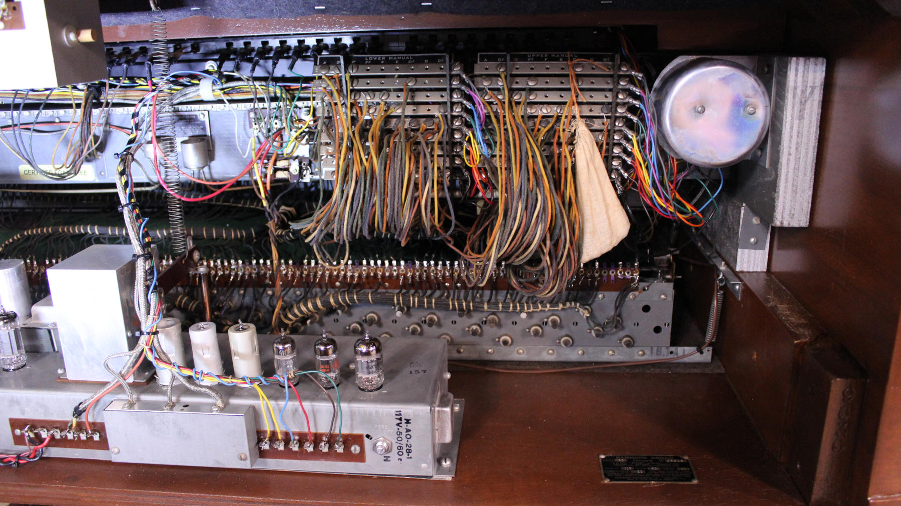 615 is a beautifully restored 1952 Hammond B2 that has been professionally converted to full B3 specifications. Finished in rich walnut, this vintage instrument combines early 1950s craftsmanship with the legendary performance features of the Hammond B3, the gold standard for gospel, jazz, and soul musicians.