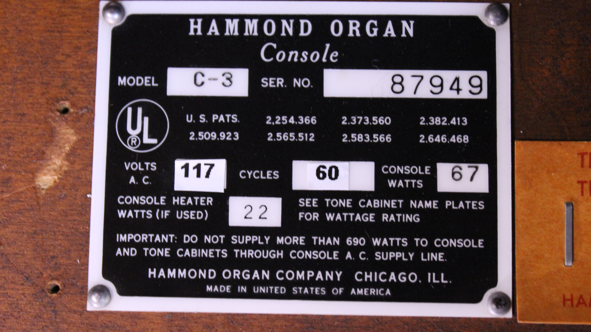 #635 is a 1962 Hammond C3 in a Walnut finish. Serial #87949 SOLD!